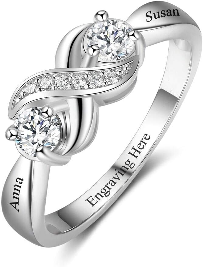 Personalized Infinity Engagement Promise Rings for Her Custom 2 Simulated Birthstone Mothers Rings Engraved 2 Names Jewelry for Women