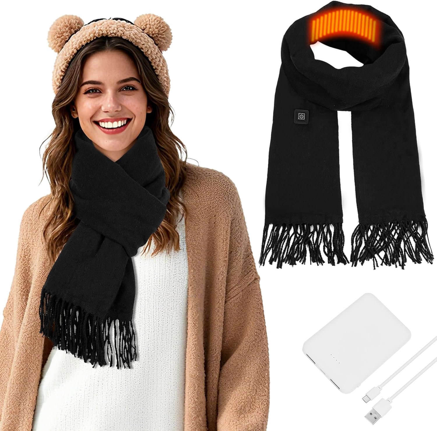 Heated Scarf For Women Men Usb Rechargeable Heated Scarf Portable & Adjustable Neck Warmer