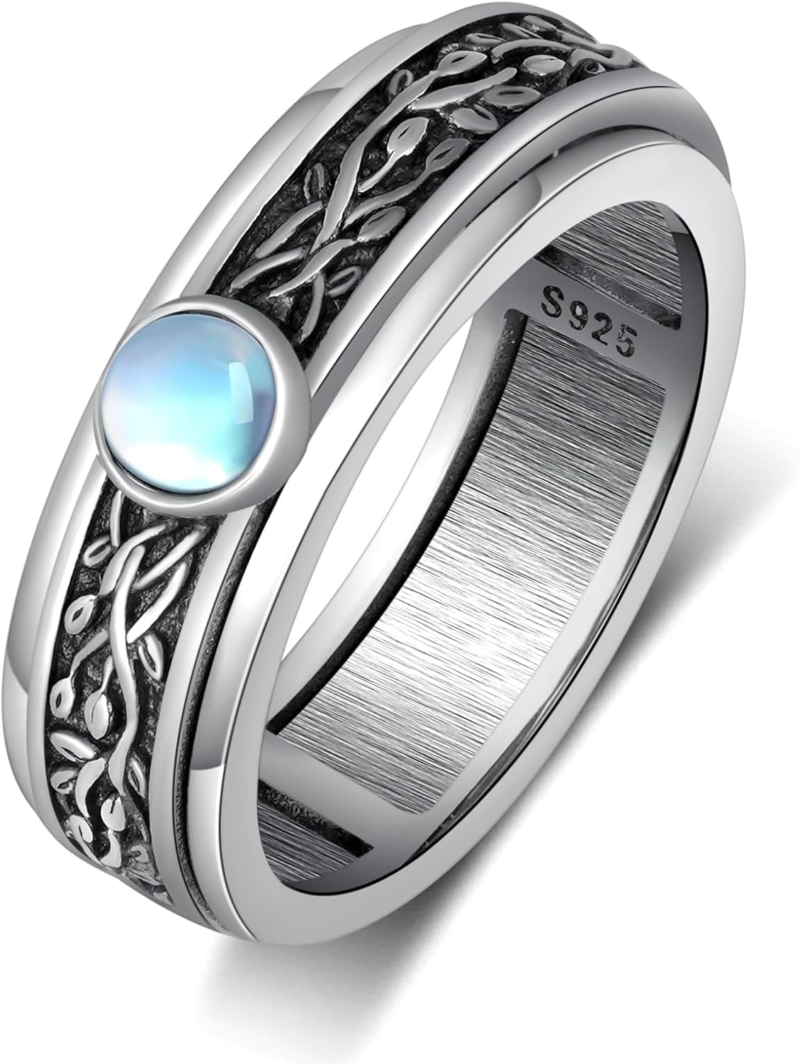 Fidget Ring 925 Sterling Silver Spinner Rings Filigree Tree of Life Anxiety Rings for Women Moonstone Fidget Jewelry Gifts