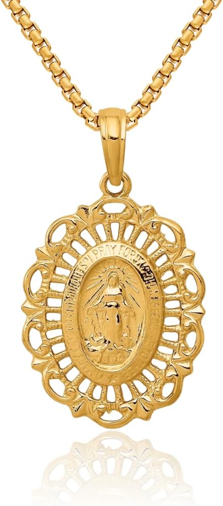 IceCarats 14K Solid Yellow Gold Oval Our Lady of Miraculous Medal Blessed Virgin Mary Necklace Chain Pendant Charm