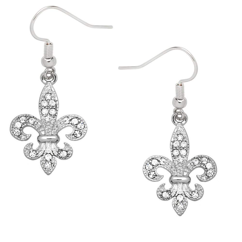Liavy's Fleur De Lis Fashionable Earrings - Fish Hook - Sparkling Crystal - Unique Gift and Souvenir