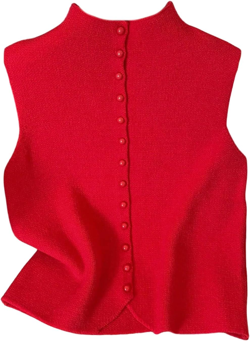 OYOANGLE Women's Button Up Sweater Vest Sleeveless Mock Neck Dressy Knit Sweater Tank Tops