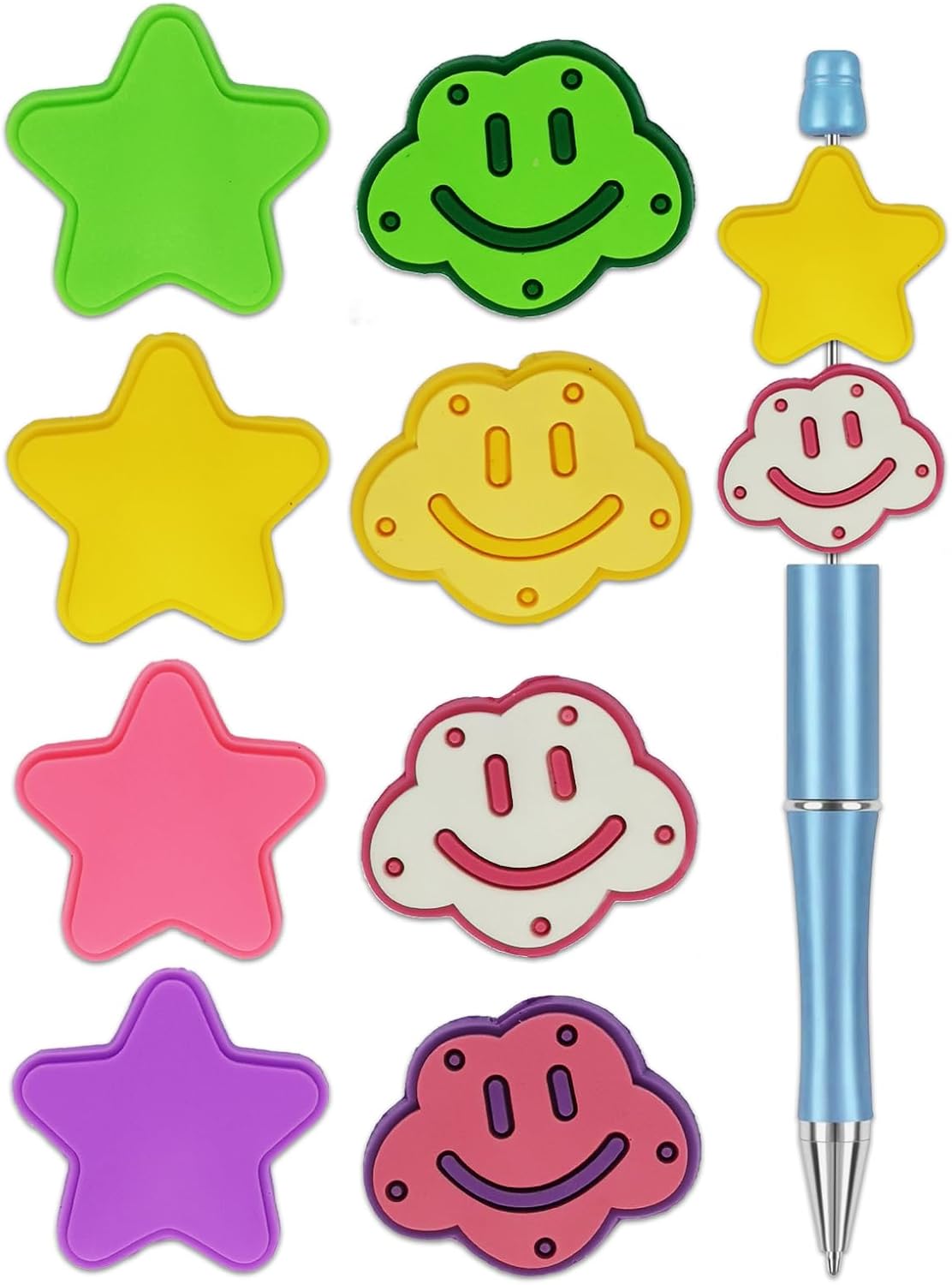 8Pcs Silicone Focal Beads for Pens – Premium Soft, Durable Beads for Custom Pen Making, DIY Craft Projects, and Personalization – Assorted Colors and Designs (Star & Cloud)