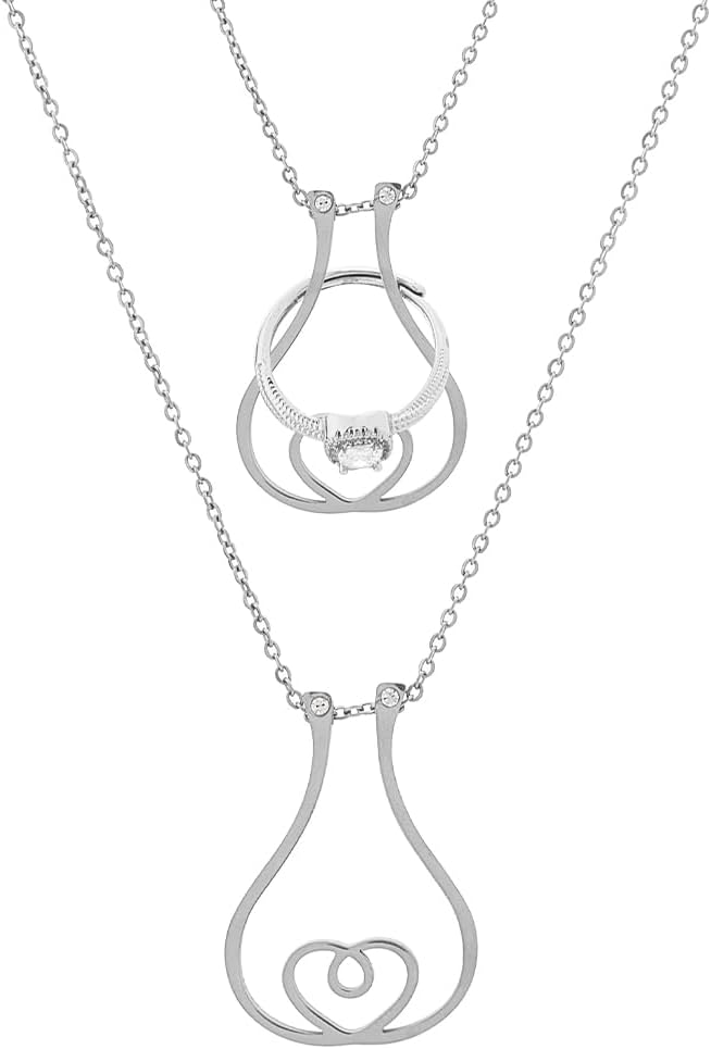 1Pc Ring Holder Necklaces 15.87 inch Heart Ring Keeper Necklace Stainless Steel Color Wedding Engagement Saver Pendant Necklace Jewelry for Wife Fiancee Nurse Ladies Gift