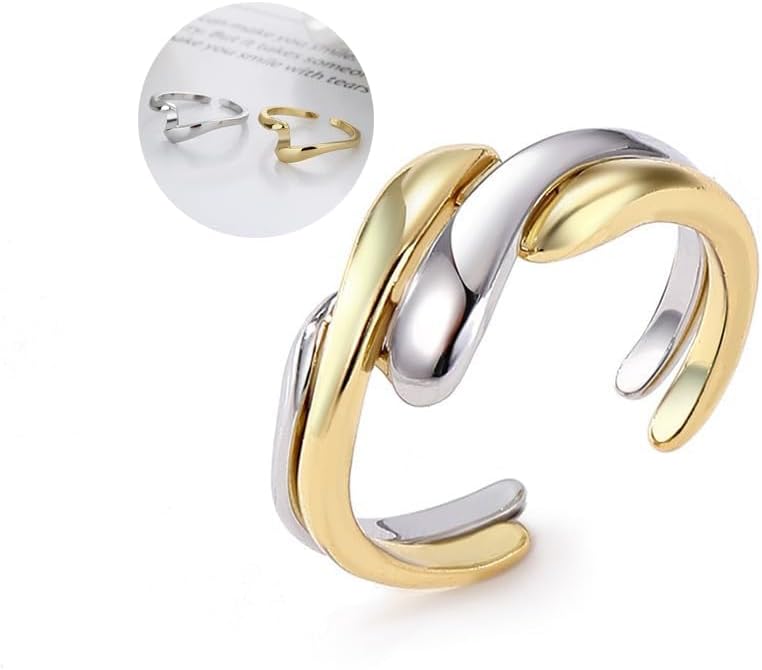 Dainty Twist Open Ring for Women, 18K Gold Plated Minimalist Adjustable Detachable Wear Band Statement Stacking Jewelry