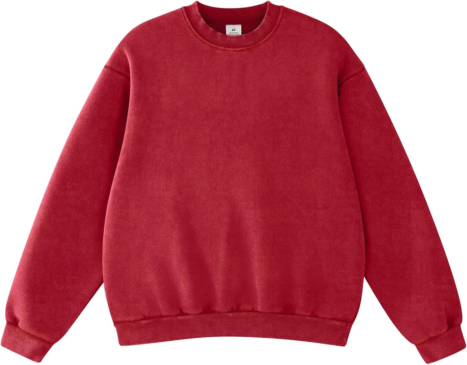 FAIABLE Womens Acid Wash Crewneck Sweatshirt Oversized Fleece Heavyweight Sweatshirts Unisex Vintage Cotton Pullover