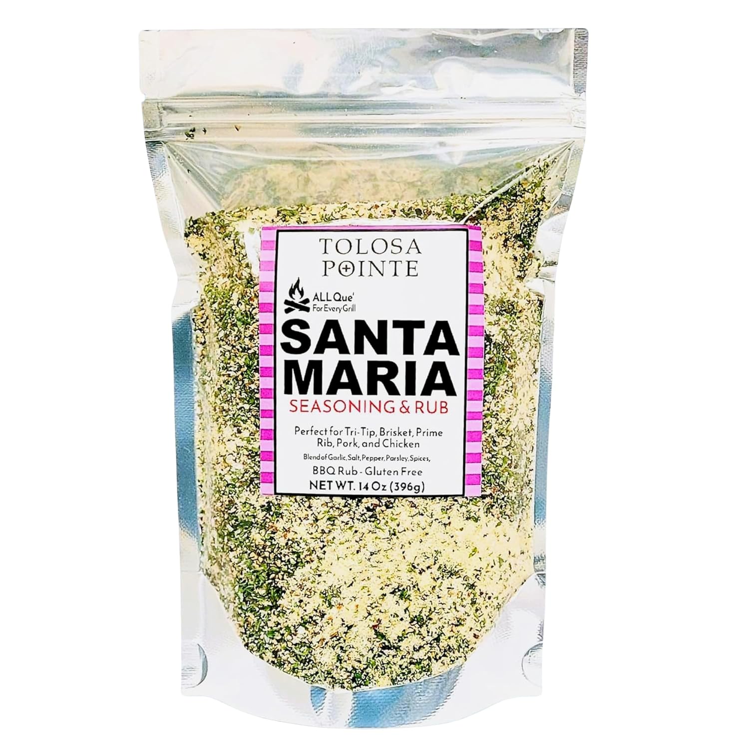 Tolosa Pointe All Que Santa Maria Seasoning & BBQ Rub for Chicken, Steak, Pork, Ribs, Prime Rib Roast, BBQ Seasoning, Grill, Gluten Free, 14 Oz (396g)
