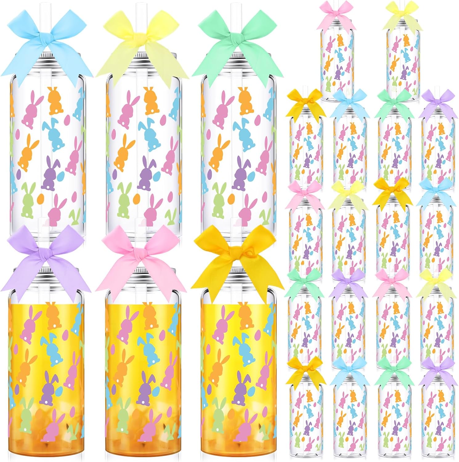- Sufficient Quantity: you will receive 24 Easter bunny cups with lids and straws and bows; Each Easter plastic cup is 13.5 oz, comes with an open hole PET lid and a clear straw; The Easter cup is sufficient to meet your daily use and replacement needs; You can also share Easter tumblers with straw with others