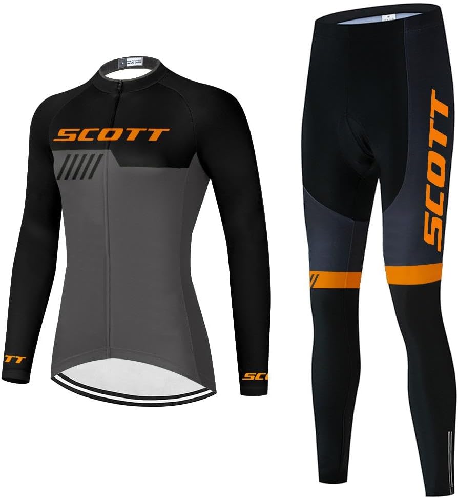 Women's Cycling Jersey Set Long Sleeve Bike Shirt Bicycle Clothing Cycling Pants with Gel Padded