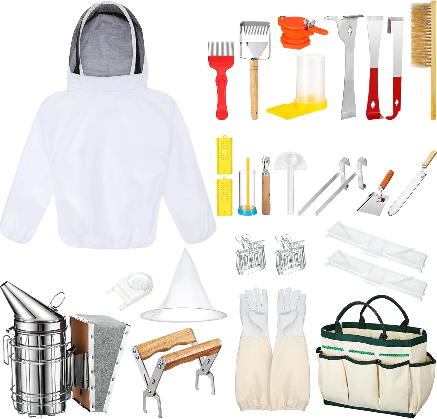 30 Pcs Beekeeping Supplies Beehive Equipment Beekeeping Starter Kit Bee Keeper Supplies All with Jacket Beehive Kit Bee Smoker Uncapping Tool for Beginners Professional Beekeepers(Large)