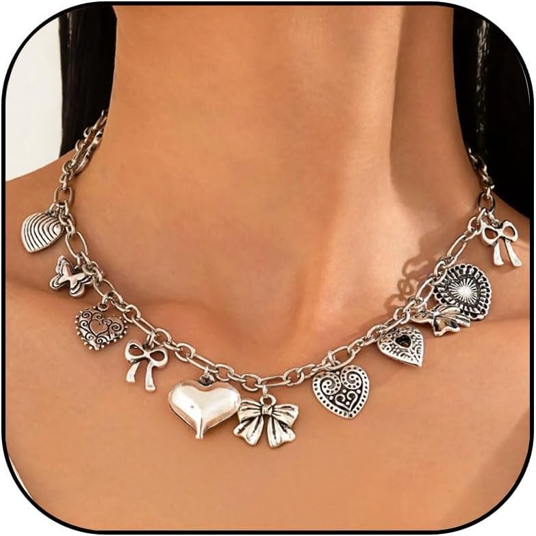 MIFYNN Gold Charm Necklaces for Women Heart Bow Shell Pendant Necklace Statement Choker Necklace Summer Beach Necklace Jewelry Gifts for Women