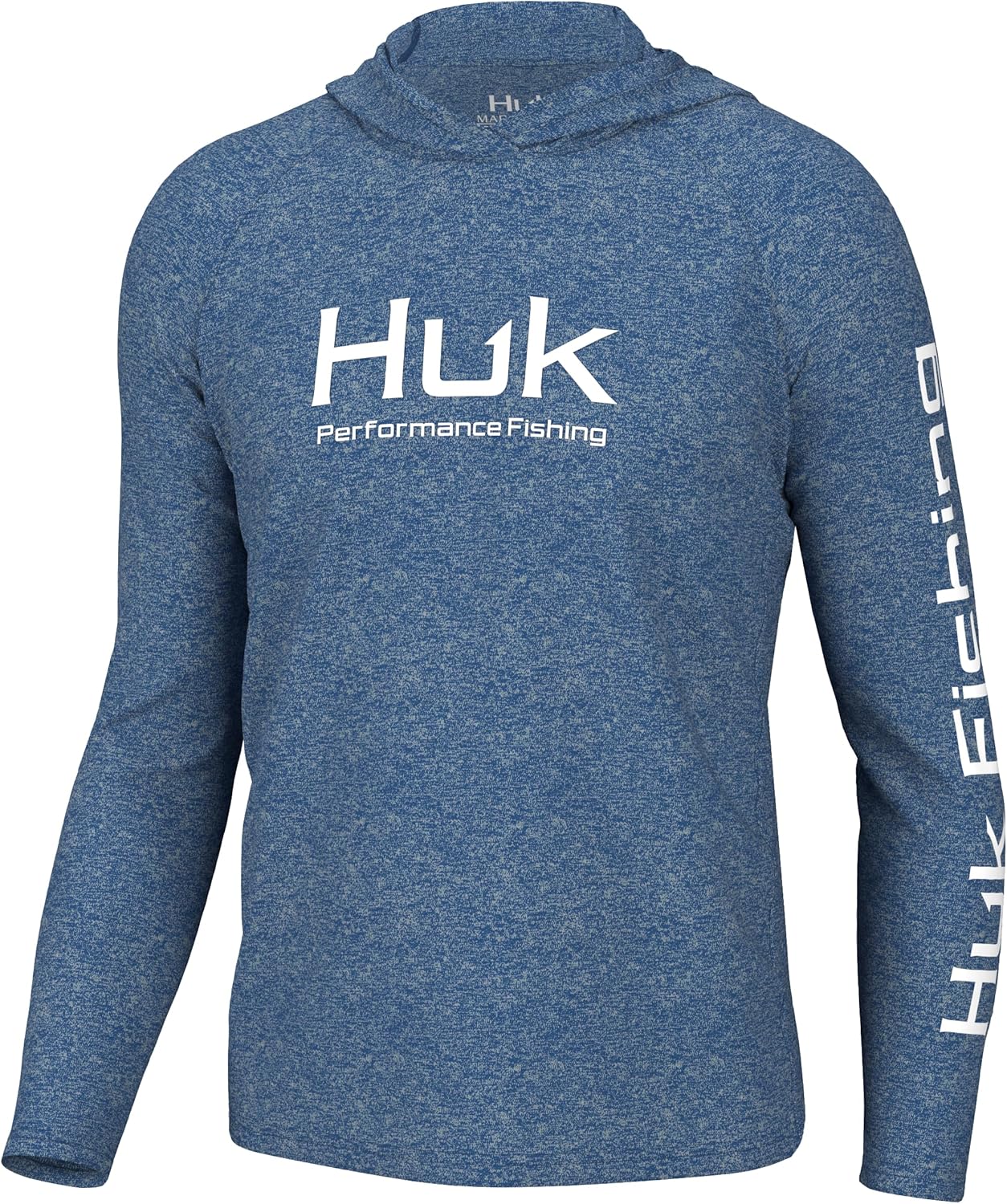 HUK mens Pursuit Heather Hoodie, Sun Protecting Fishing Shirt With Hood