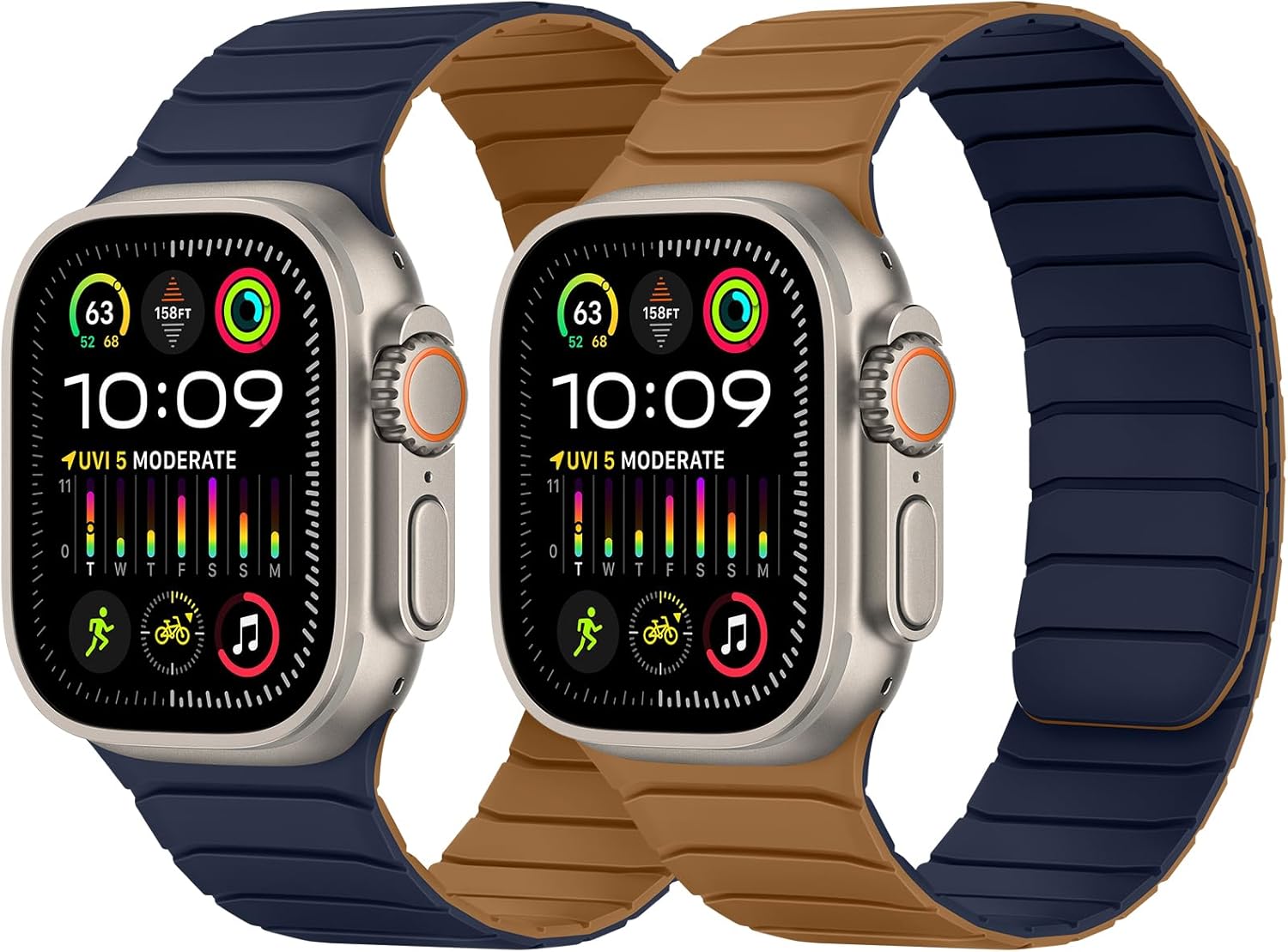 Tasikar Double Sided Wearable Magnetic Band Compatible with Apple Watch 49mm 46mm 45mm 44mm 42mm 41mm 40mm 38mm, Soft Silicone Sport Strap Loop for iWatch Ultra 3 2 1 SE Series 11 10 9 8 7 6 5 4 3 2 1, Brown Indigo