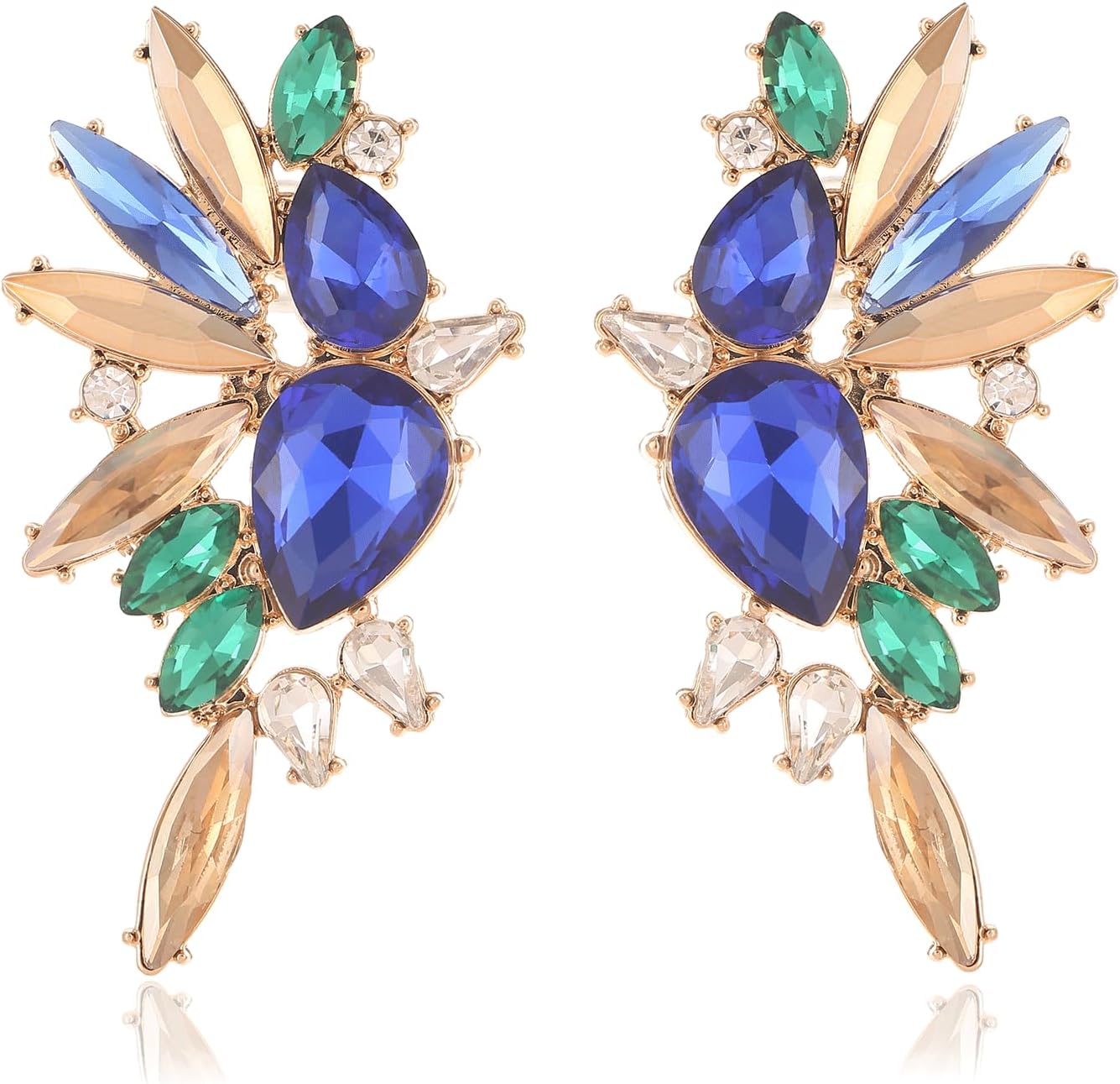 Vintage Rhinestone Statement Earrings Retro Big Cluster Crystal Drop Dangle Earrings for Women