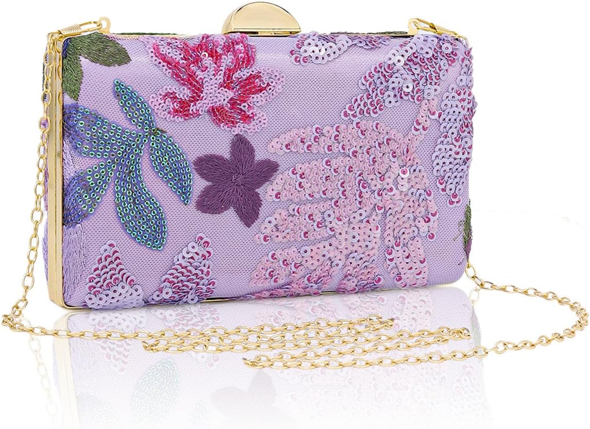 Embroidered Flower Evening Bag Floral Clutch Purse for Women Wedding Beaded Purse Sequin Clutch Shoulder Bag