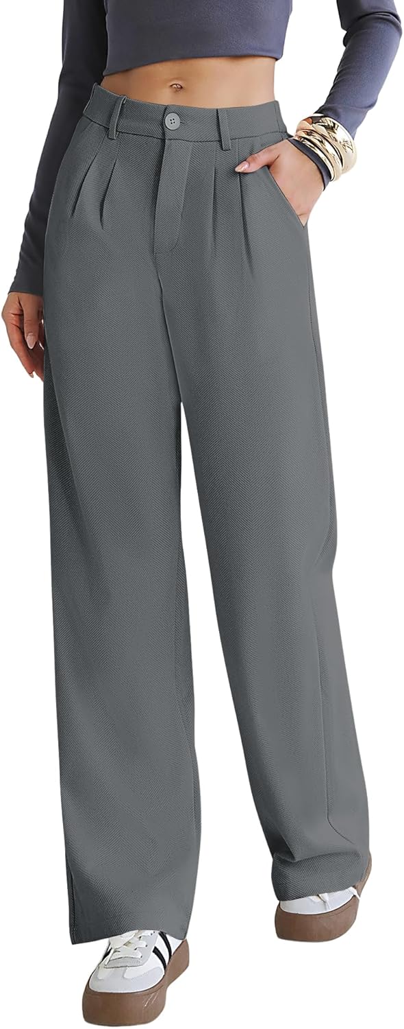 GORGLITTER Women's Low Rise Trousers Dress Pants Casual Dressy Pleated Wide Leg Business Work Slacks Pants