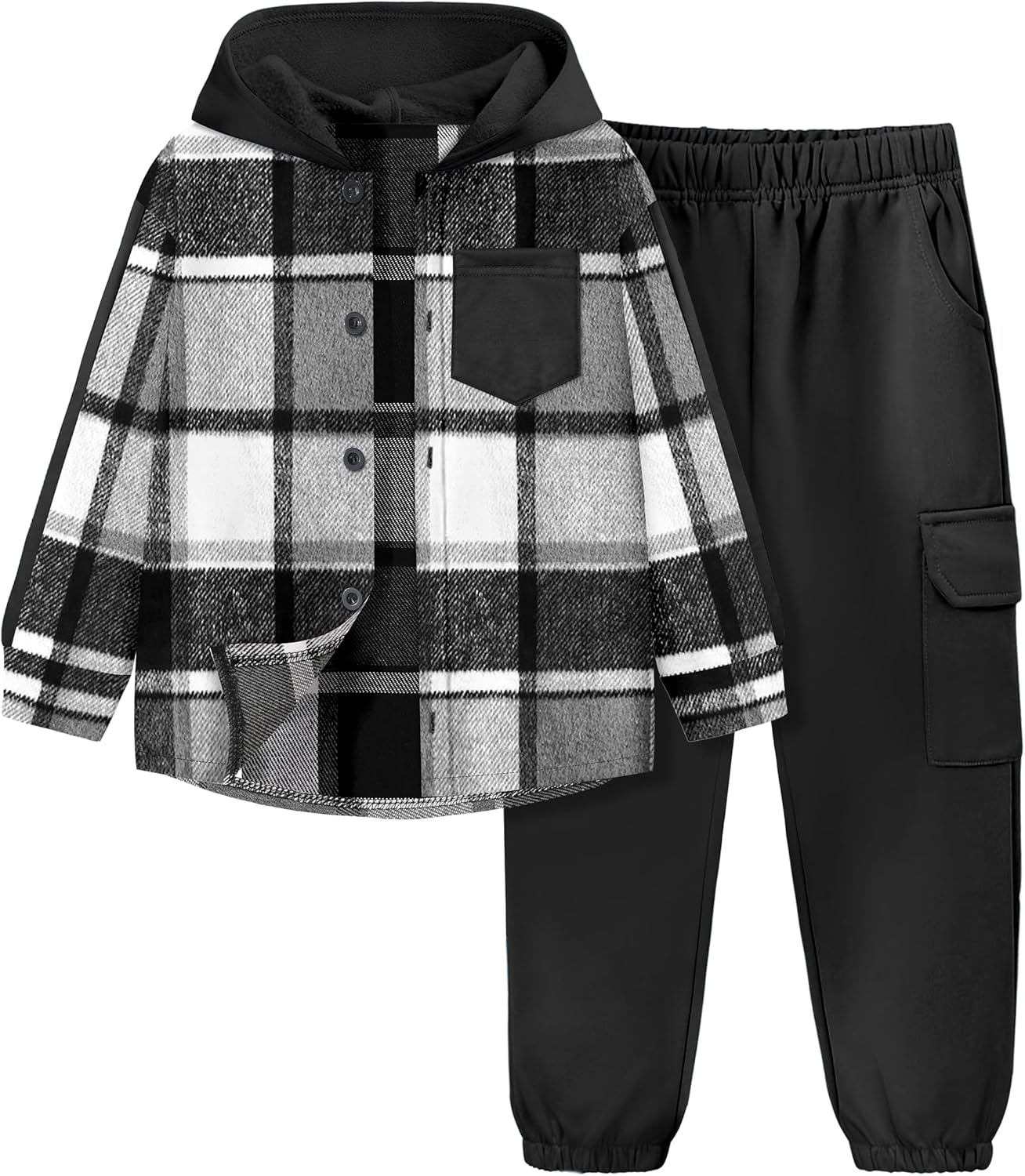 Toddler Boy Clothes Plaid Button Down Long Sleeve Hooded Shirt Tops Pants with Pockets 2Pcs Fall Winter Outfits 3-8Y