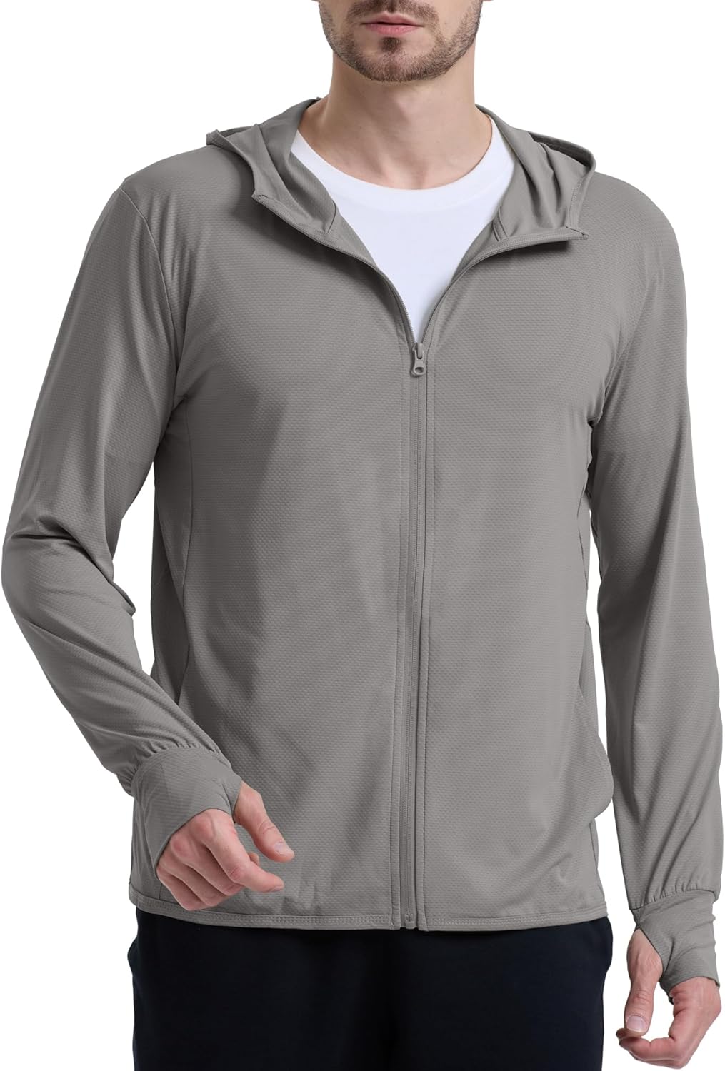 Men's UPF 50+ Sun Protection Lightweight Hoodie Jacket Full Zip Long Sleeve Hiking Fishing Outdoor Performance