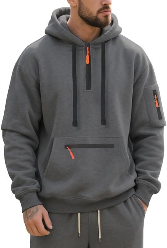 Men's Hooded Sweatshirt - Quarter Zip Pullover with Pockets Autumn Winter Casual Wear for Vacations