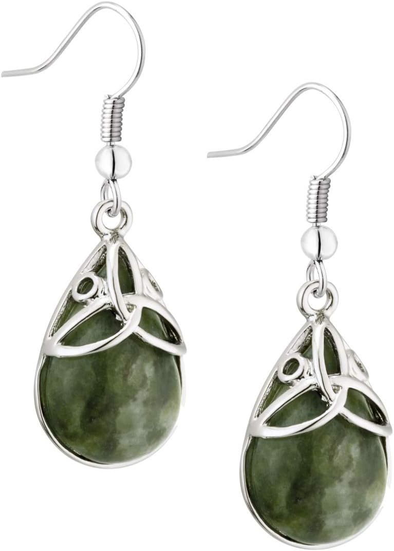 Rhodium Plated Oval Marble Trinity Drop Earrings
