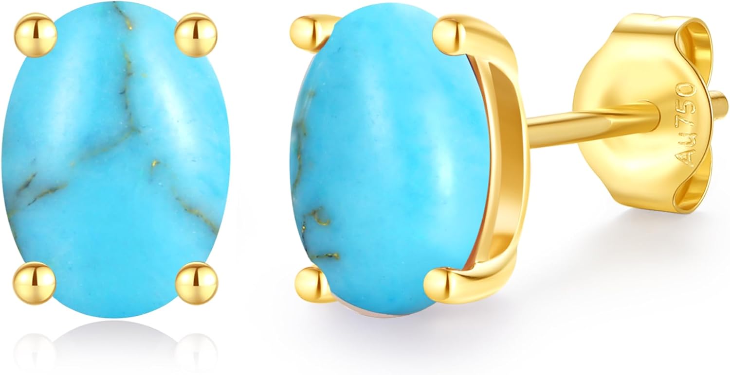 FANCIME 14k Solid Yellow Gold Oval Stud Earrings Prong Cluster Stud Earrings Natural/Created Gemstone Jewelry Gifts for Her Mom Women Wife,Gemstone Size 5 * 7mm