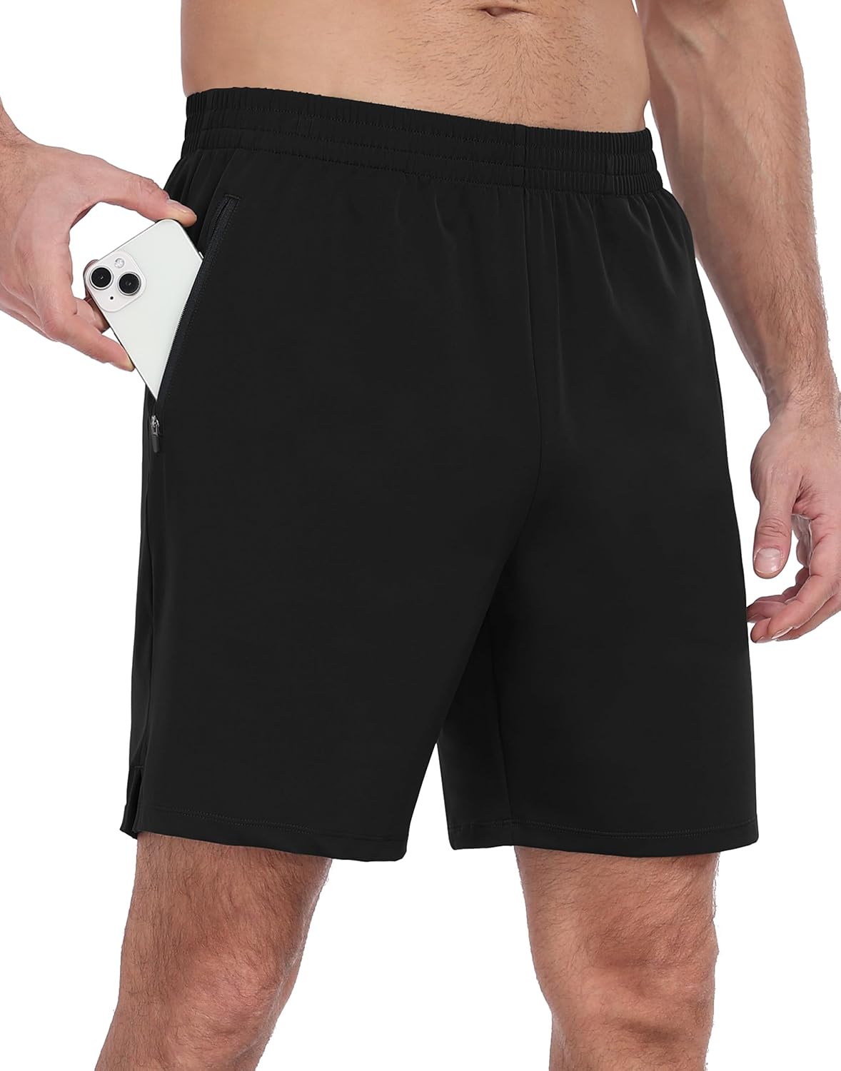 HISKYWIN Men's Athletic Running Shorts Lightweight Quick Dry Workout Jogging Shorts with Zip Pockets Active Gym Sports Hiking
