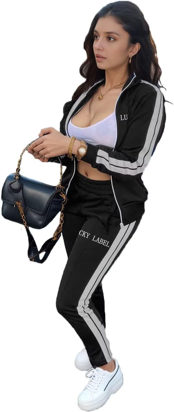Women's Striped Tracksuits 2 Piece Lounge Outfits Zip Up Sweatshirt and Sweatpants Sets with Pockets S-2XL