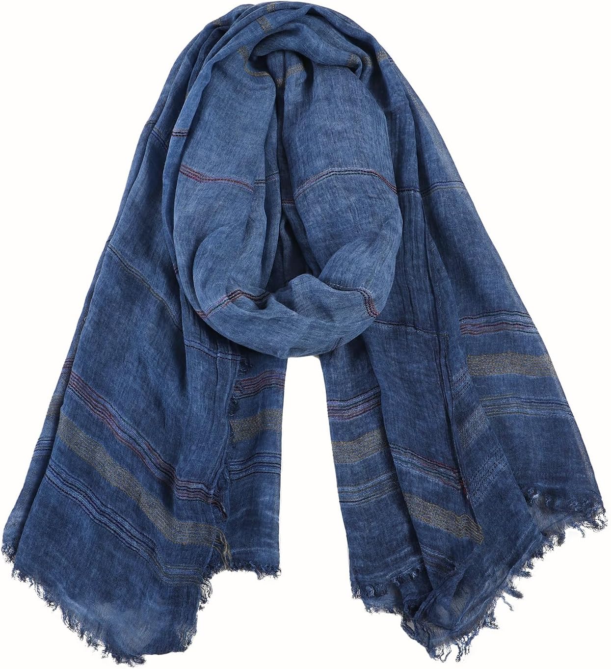 Unisex Striped Men Scarf Lightweight Cotton and linen Large Scarves Winter Warm Scarfs for Women