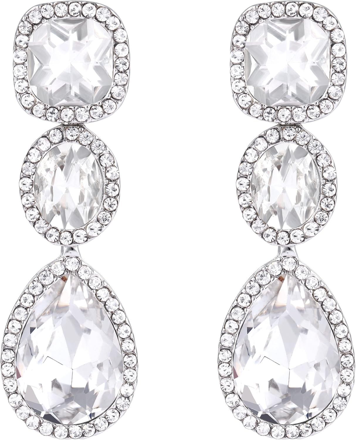 EVER FAITH Women's Austrian Crystal Elegant Bridal Square Oval-cut Teardrop Dangle Pierced Earrings