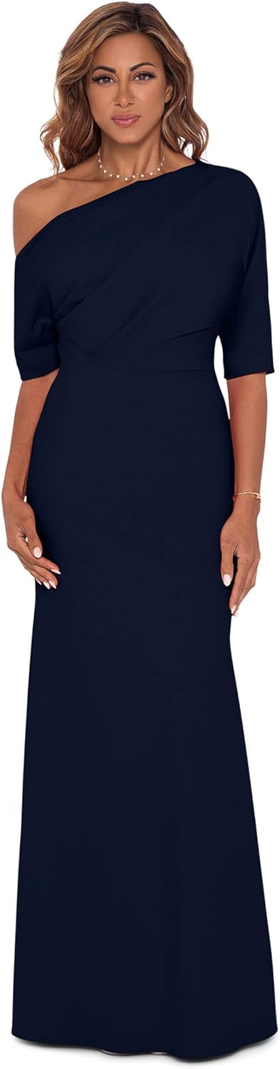 Betsy & Adam Womens Women's Long Ruffle Tier Mesh Evening Dress