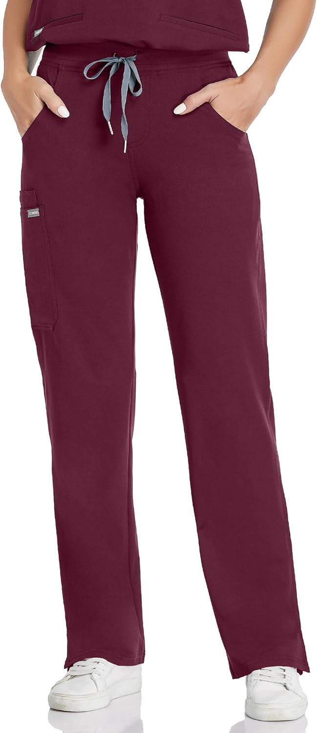 COMENII Scrubs for Women, Knit Yoga Waistband Straight Leg Cargo Pants, Classic Fit Womens Scrubs Pants-3-R-Burgundy L