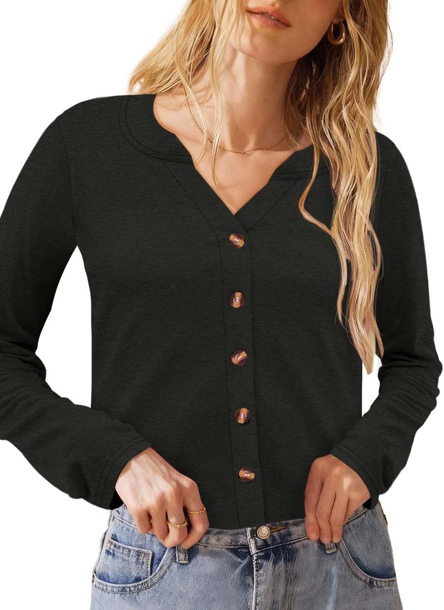 Women Button Down Tops V Neck Long Sleeve Casual Dressy Shirts Soft Comfy Blouses Fall Clothes Fashion Outfits