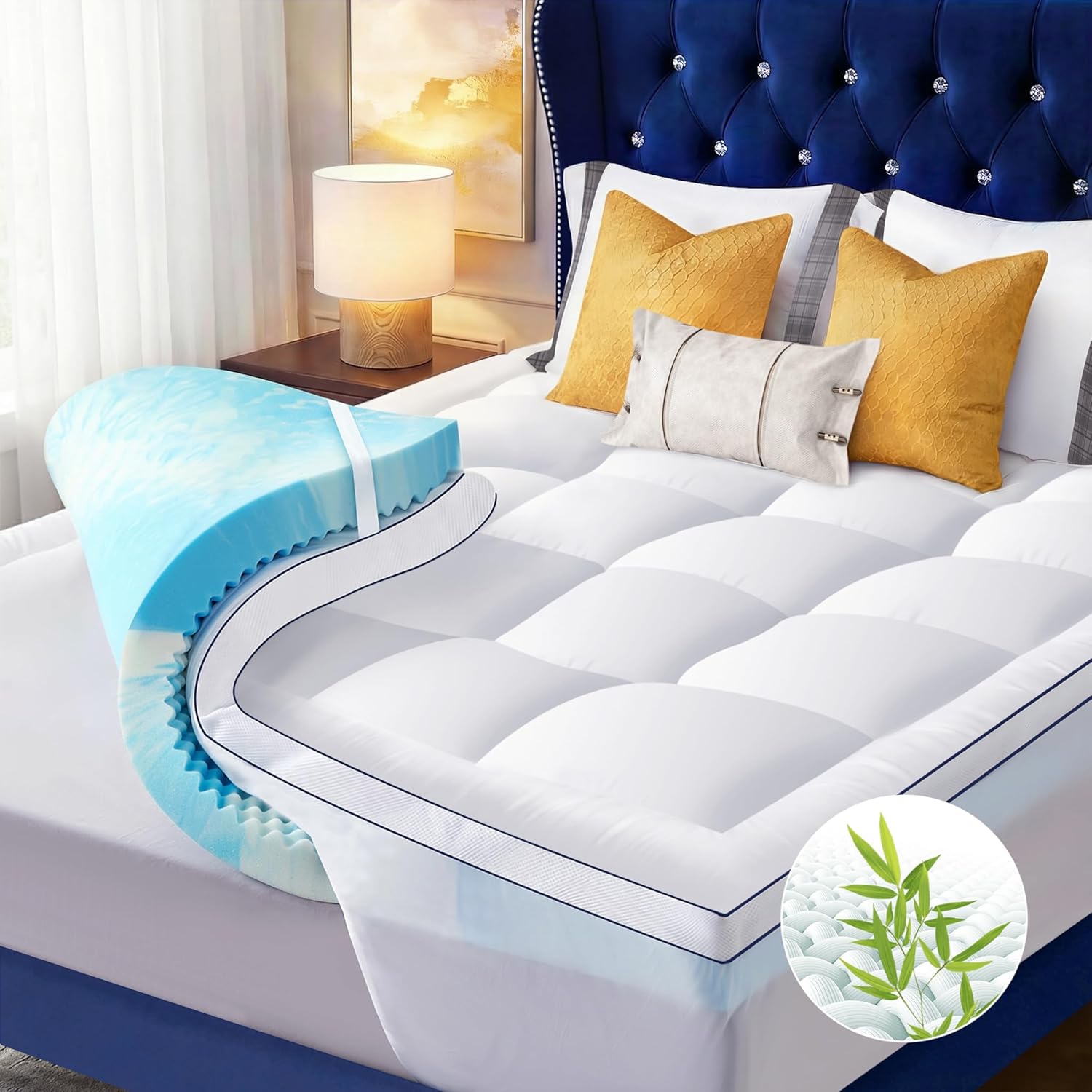 - Relieves Pain & Supports Restful Sleep: The soft mattress topper bottom features 4 elastic bands and a bed skirt that can wrap up to 21 inches, preventing mattress topper shifting and friction noise. This combination of plushness and noise control helps ease body pain or pressure while minimizing nighttime disturbances for a more peaceful sleep