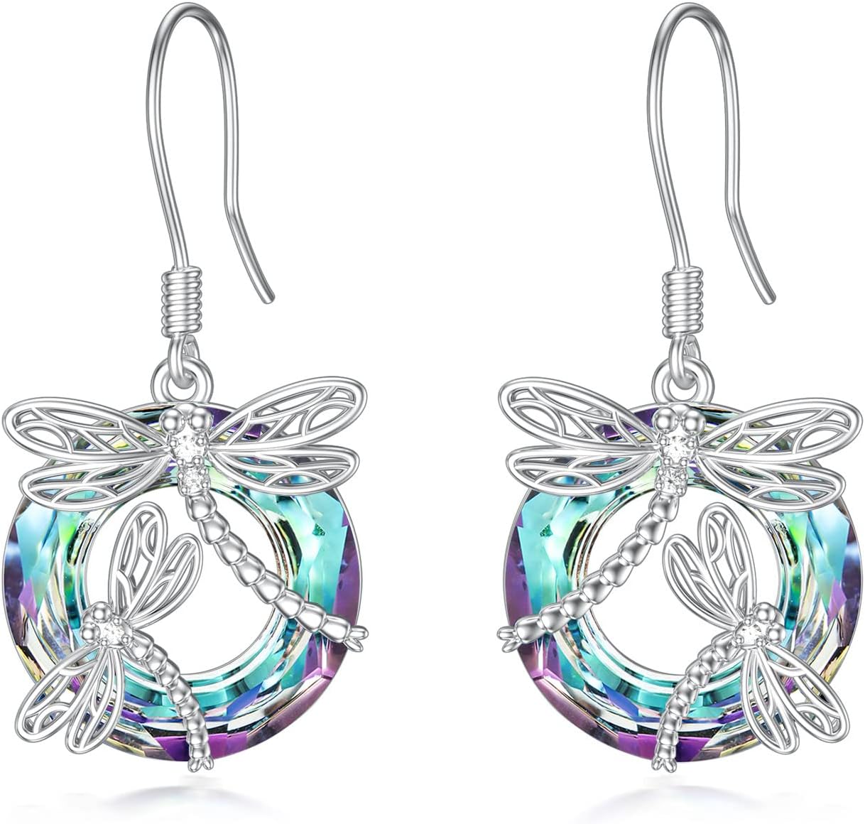 TOUPOP Dragonfly Gifts for Women Sterling Silver Dragonfly Earrings with Circle Crystal Dragonfly Dangle Drop Earrings Jewelry Gifts for Women Mom Birthday Christmas