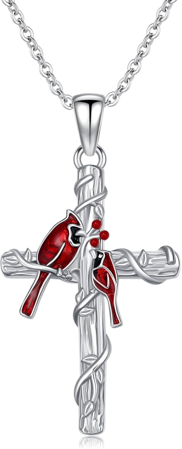 RMREWY Cross Bee/ladybug/Butterfly/Dragonfly/Red Cardinal Necklace for Women 925 Sterling Silver Cross Pendant Necklace Animal Lovers Jewelry Christmas Gifts for Women Mother Grandma
