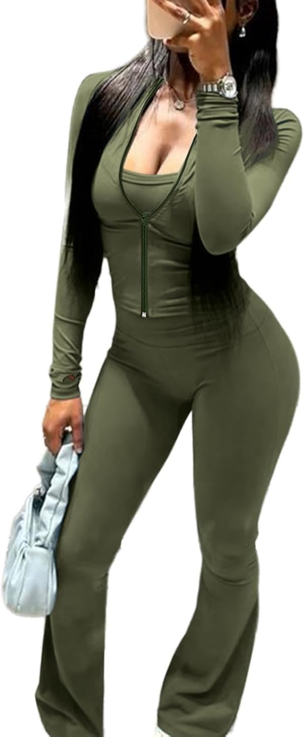 watersouprty Women's 2 Piece Outfits Tracksuit Sets Bodycon Long Sleeve Zip Up Jacket flares Jogger Matching Sweat Pants Set