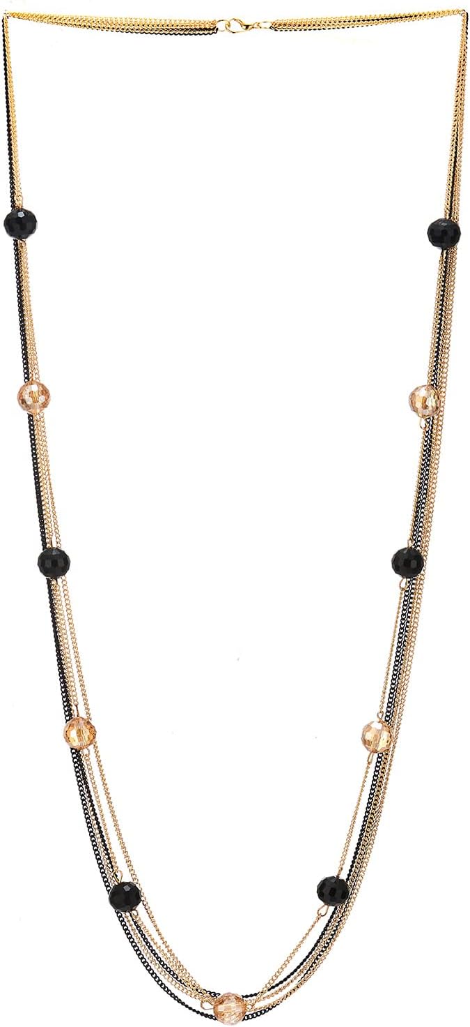Gold Color Statement Necklace Multi-strand Long Chains with Champagne Faceted Crystal Balls, Dress