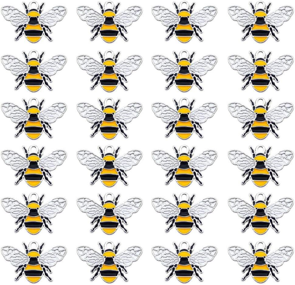 Lot of (x24) Silver Black Colorful Enamel Oil Drip Alloy Metal Honeybee Craft Bee Charms 1 by 0.7 inch (approx.26x17mm) Bracelets Earrings Pendants Making Jewelry Findings