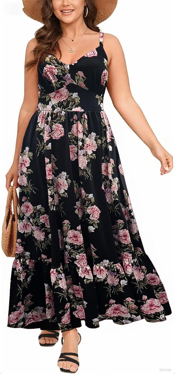 Plus Size Dress Sleeveless for Women Maxi V Neck Casual Boho Spaghetti Strap Long Dresses Pocket Summer XL-4XL