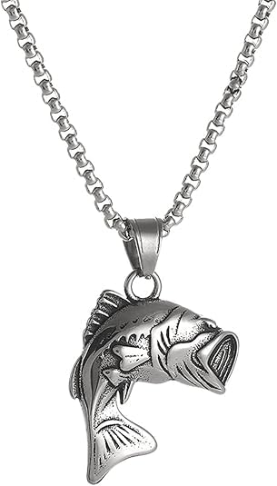 Largemouth Bass Fish Necklace for Men & Women,Realistic Jumping Bass Pendant Necklaces,Silver Fisherman Charm Neckchain,Outdoor Enthusiast Gift,Fisherman’s Lucky Charm Amulet