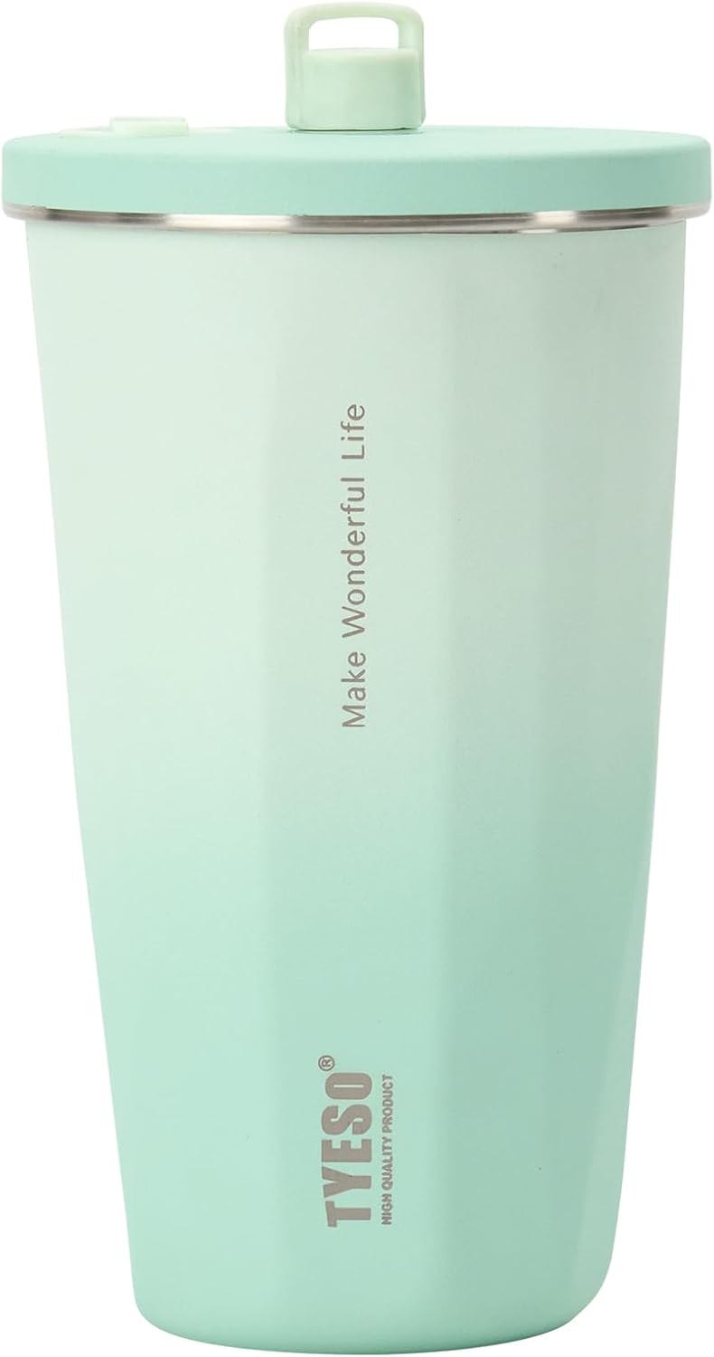 TYESO 20oz Tumbler with Retractable Straw, Stainless Steel Tumbler with straw inside Stainless steel wide-mouth vacuum insulation bottler home office outdoor multi-color (GRADIENT MINT GREEN, 20 oz)