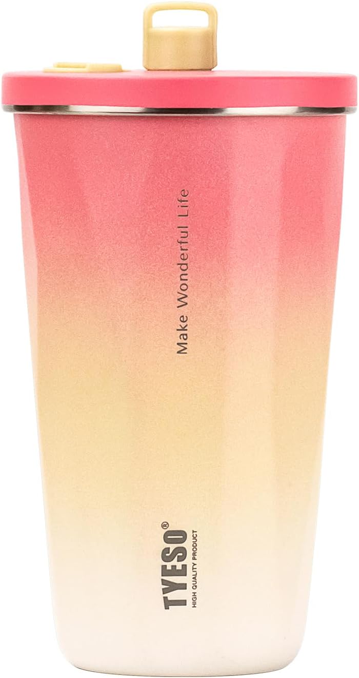 TYESO Stainless Steel Tumbler with straw inside Stainless steel wide-mouth vacuum insulation home office outdoor multi-color thermal insulation and cold insulation cover with 20oz (Pink)
