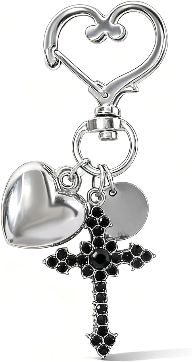 Angyape Goth Cross Keychain Heart Keychain Cute Bag Charms for Handbags Purse Charms Aesthetic Accessories Gifts for Women