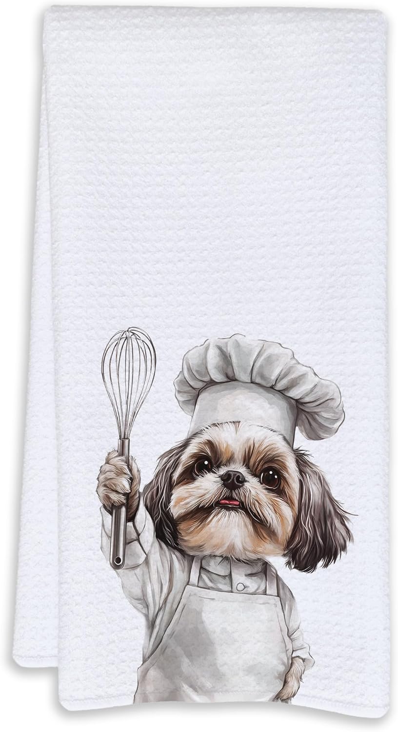 Cabana Bro Funny Chef Shih Tzu Kitchen Towels, Shih Tzu Shihtzu Gifts, Dog Lovers Mom Dad Gifts Decorative Hand Tea Dish Towels for Kitchen, 16x24 Inches