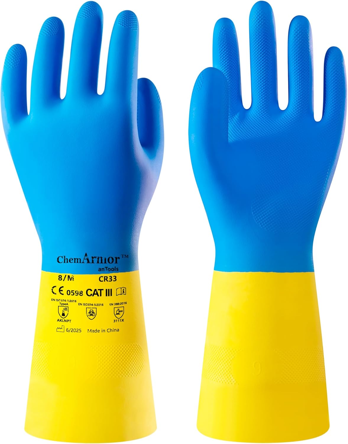 - Durable and Sensitive: AnTools industrial-strength rubber gloves, featuring a two-toned and double-dipped blend of neoprene and natural rubber, boast a thickness of 28 mil (0.7 mm). They maintain softness while ensuring durability, offering exceptional tactility, sensitivity, and dexterity, flexible enough to handle small objects.