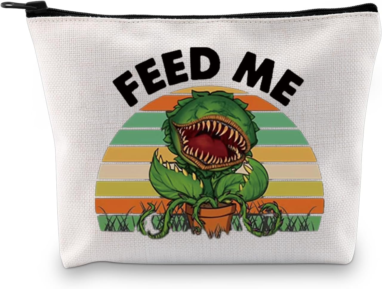 - 【MATERIAL】- FEED ME SEYMOUR! Our cosmetic bag is made of high-quality cotton and linen, exquisite workmanship, strong abrasion resistance, sturdy and durable, waterproof design, easy to carry at home and travel.