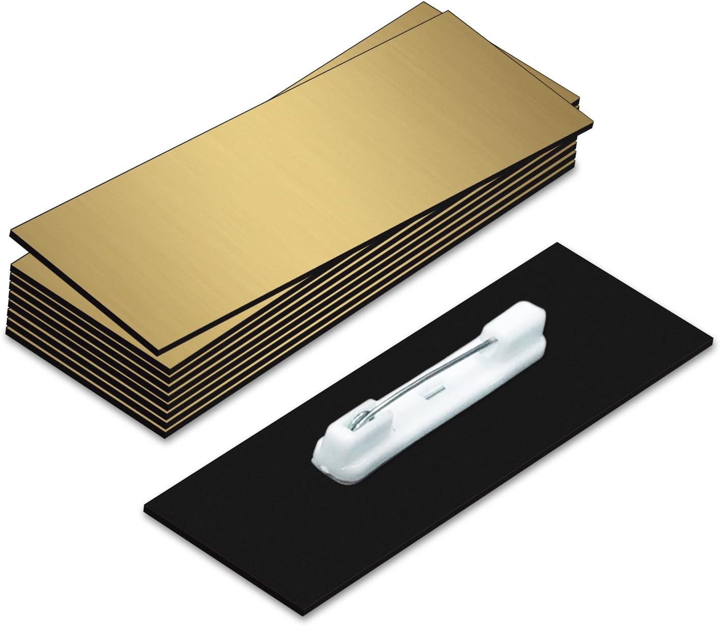 1" X 3" Name Tag/Badge Blanks with Pin - 10 Pack (Brushed Gold)