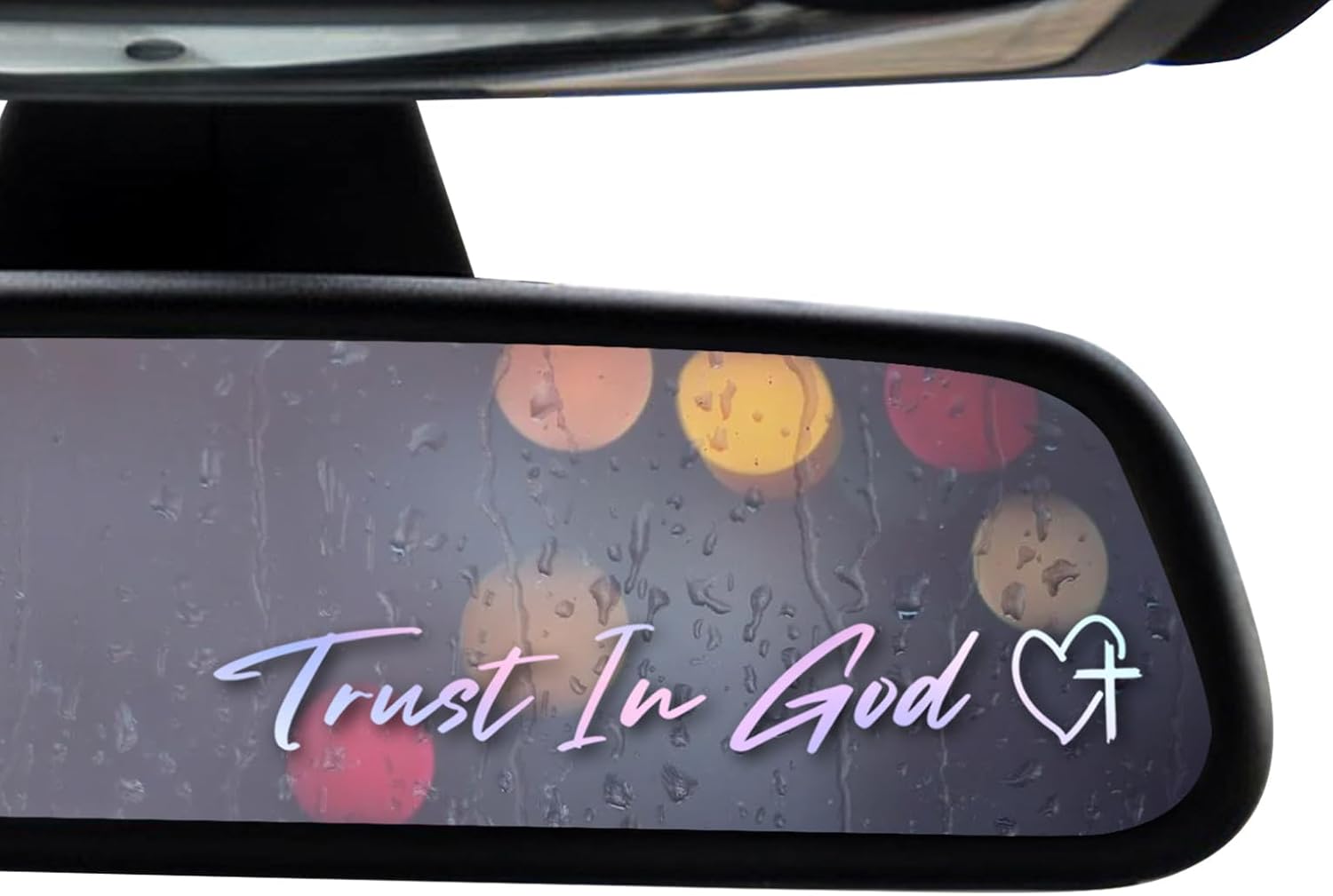 3 x Trust In God Cross Holographic Car Mirror Decal Stickers for Cars Rearview Mirror Decal for Women Cute Decals Vinyl Affirmation Stickers for Window, Mirror, Tumbler, and Water Bottle
