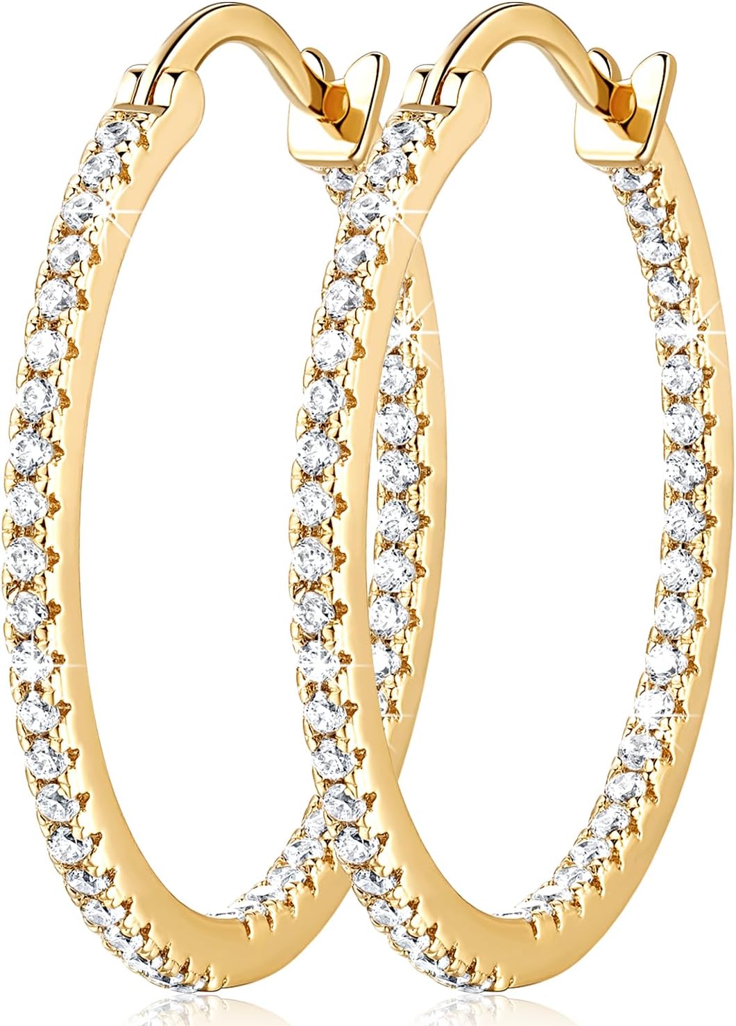 Gold Hoop Earrings 14K Gold Hoop Earrings for Women with Dual-sided Cubic Zirconia Hoops Earring for Women Sensitive Ears Hypoallergenic Womens earring 15/20/30/35mm