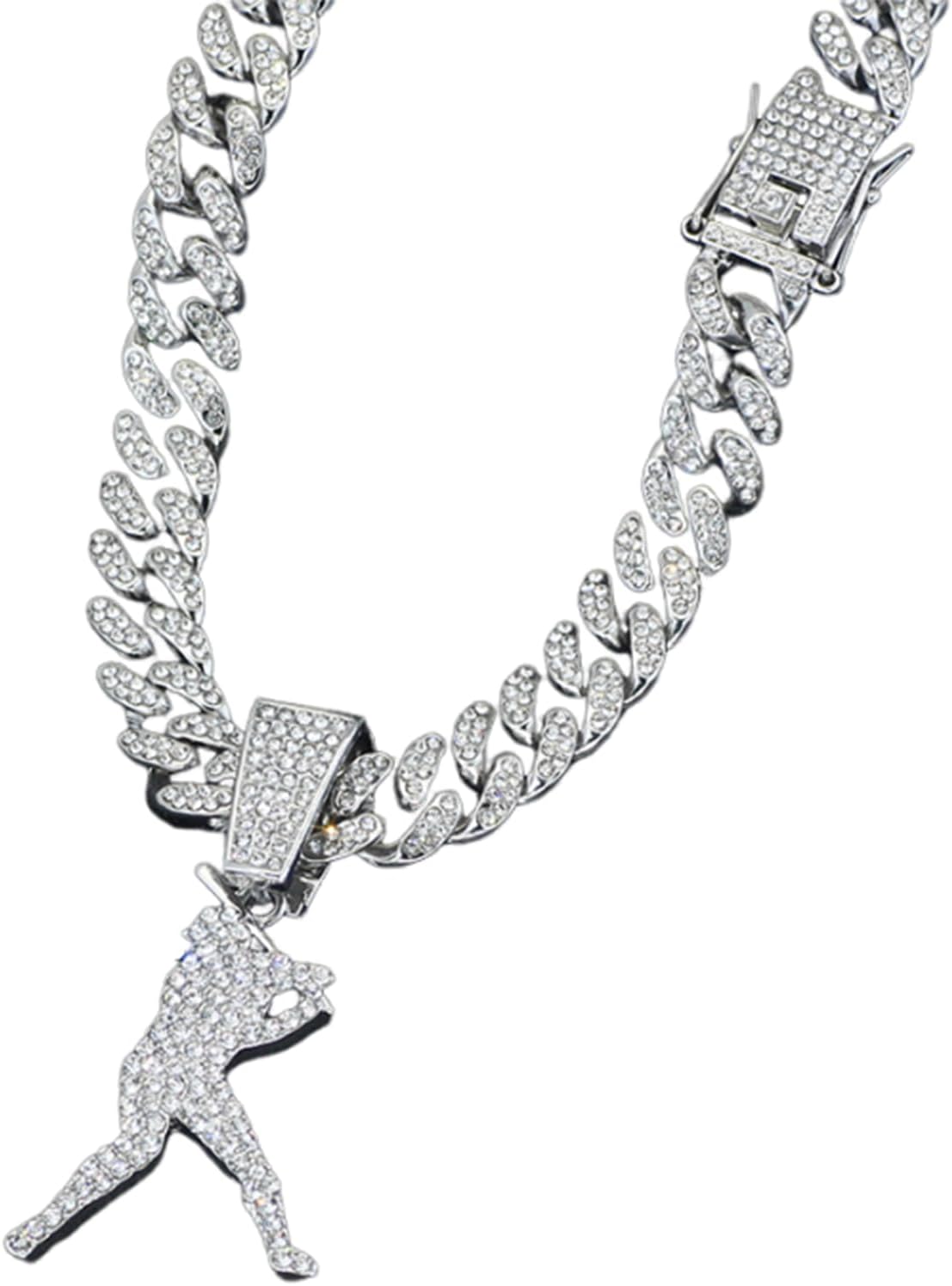 Miami Cuban Pendant Necklace, Ice Out Chain, Sport Fan, Hip-Hop Jewelry for Men Women, 20inch